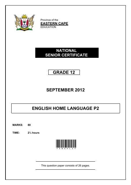Download online Grade 12 September 2012 English Home Language P2 Doc Open Library